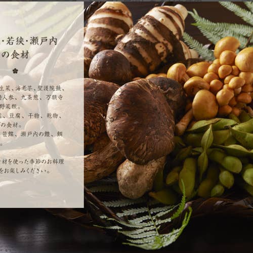 加茂なす、金時人参などの京野菜、若狭の甘鯛などの食材を使った季節のお料理とおばん菜の数々をお楽しみください。おばん菜はなつかしいおふくろの味。京都人の食卓をにぎわせるおかずです。